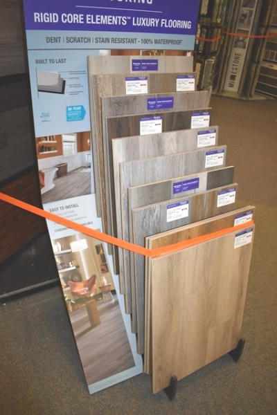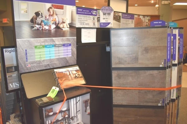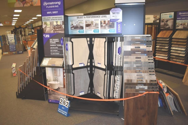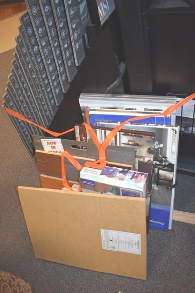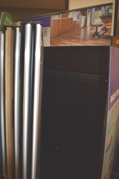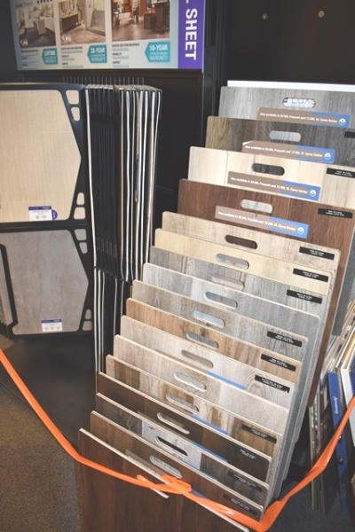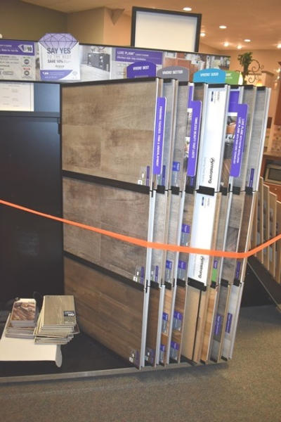 Flooring display rack with displays, appears to be a lot of linoleum displays