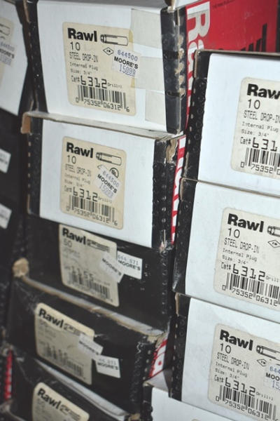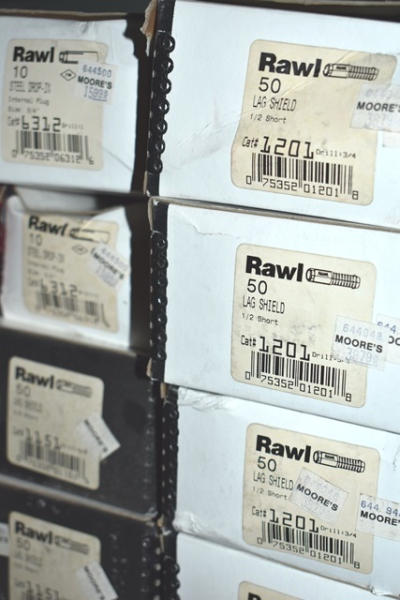 Shelf lot of Rawl fasteners