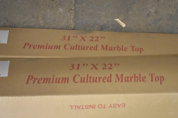 Lot of 2 Premium cultured marbled top vanity tops, 31" x 22"