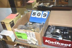 Shelf lot of assorted door knob parts