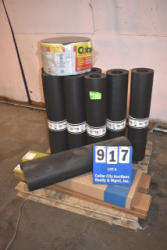 Pallet consisting of roofing tar paper, a couple boxes of flooring