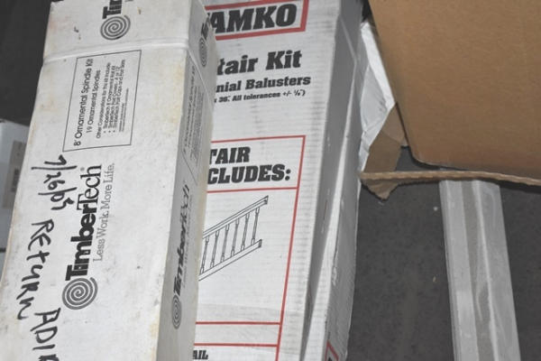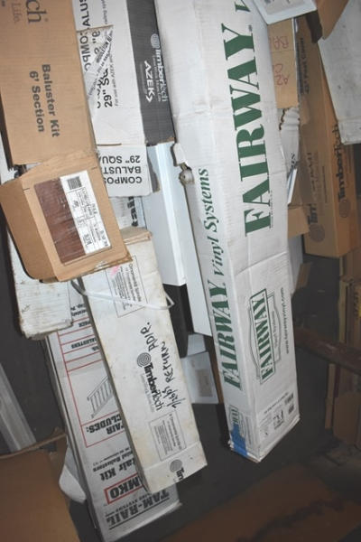 Pallet of Azek and Timbertech railing systems, balusters, etc.