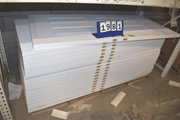 Pallet of 36" exterior door slabs, drilled for knob and deadbolt