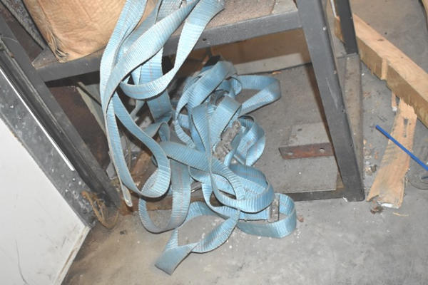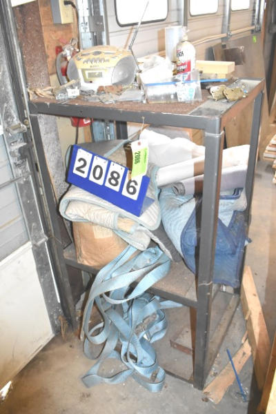 AV cart with contents consisting of radio, e-track straps, blankets, etc.