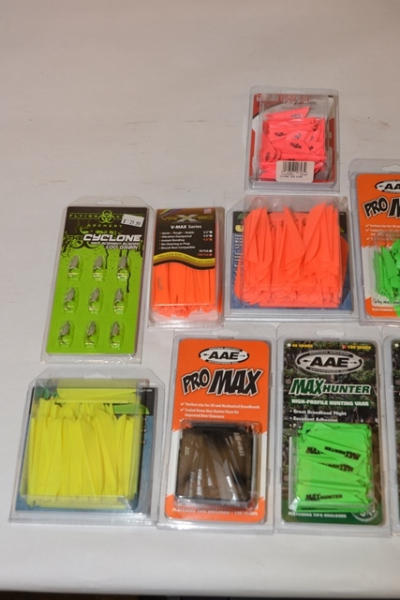 Lot included Cyclone Replacement Blades, 100 grain, Max Hunter High Profile Hunting Vanes, Duravanes 3" Expert Quality Vanes, etc.
