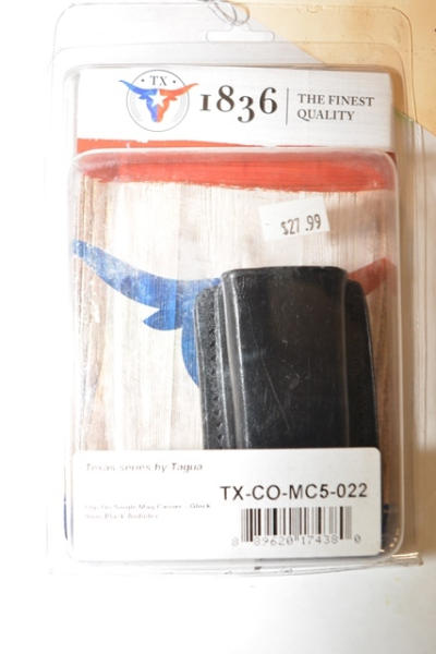 I836 "The Finest Quality Texas Series by Tagua" Model TX-CO-MC5-022, clip on single mag carrier-Glock 9MM-black/ambidextrous