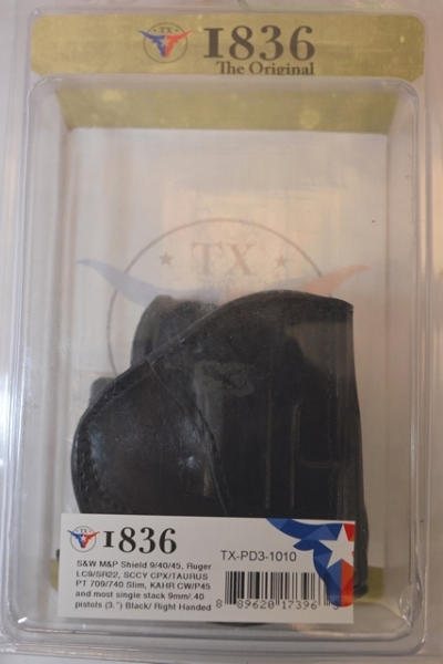 I836 Model TX-PD3-1010 fits S&W M&P Shield 9/40/45, Ruger LC9/SR22, SCCY CPX/Taurus PT709/740 Slim, Kahr CW/P45 and most single stack 9MM/.40 pistols (3"), right handed