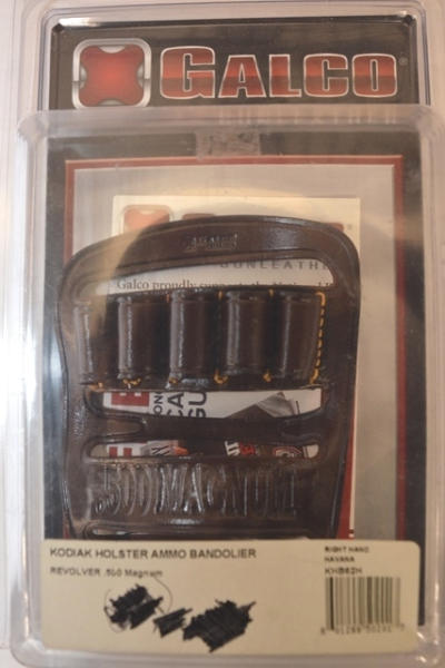Galco Gun Leather Kodiak Holster, Ammo Bandolier for revolver .4500 magnum, right hand, Havana Model KHB62H