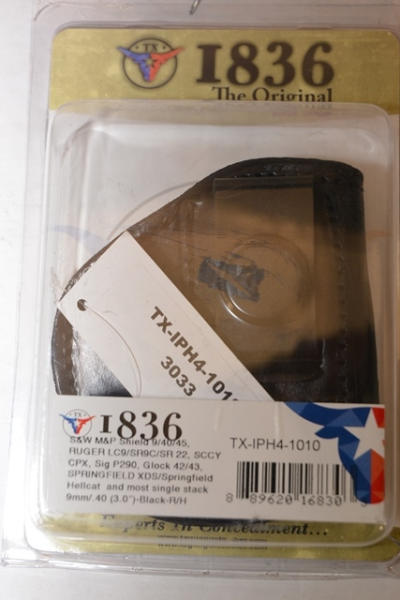 I836 Model TX-IPH4-1010, for S&W M&P Shield 9/40/45, Ruger LC9/SR9C/SR22, SCCY CPX, Sig P290, Glock 42/43, Springfield SDX/Springfield Hellcat and most single stack 9MM/.40 (3"), right handed