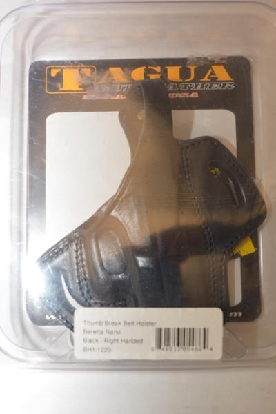 Tagua Gun Leather Thumb Brake Belt Holster for Baretta Nano, right handed, Model BH1-1220