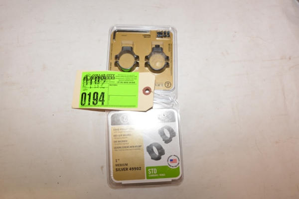 Lot consisting of one Leupold 1" Medium Silver 49902 Standard Scope ring and a Leupold 1" Medium Matte 49901 Standard Scope Ring