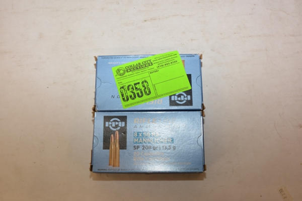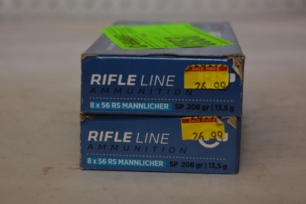 Lot of 2 boxes of PPU Rifle Line Ammunition, 8X56RS Mannlicher SP 208 grain, total of 40 rounds