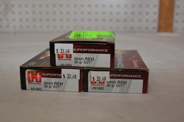Lot of 3 boxes of Hornady Superformance, 6MM Remington, 95 grain, SST, total of 60 rounds