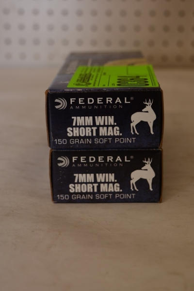Lot of 2 boxes of Federal Ammunition, 7MM Winchester Short Mag, 150 grain, soft point, total of 40 rounds