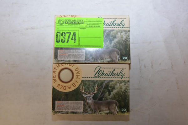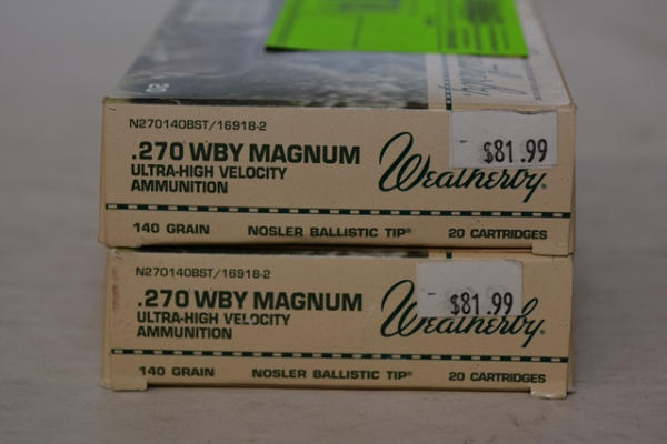 Lot of 2 boxes of Weatherby Select Plus, .270 WBY Magnum, 140 grain, Nosler Ballistic Tip, Ultra High Velocity Ammunition