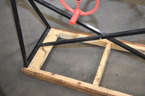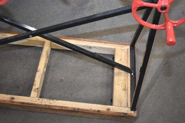 X-Press Pro Adjustable Bow Press on homemade stand with wheels