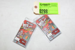 Lot includes Hoppes #9 7MM and .270 caliber bore snake, String Saver crossbow rail lube, Mongoose Dual Technology brush set, Allan Torrent crossbow broadhead 1 1/16" cutting diameter, blade set, universal crossbow cocking aid and rail lube kit, etc.