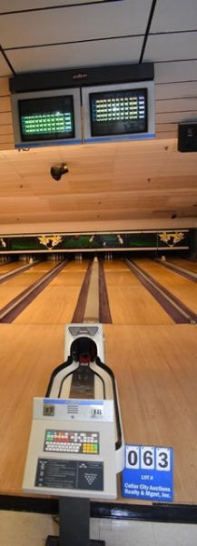 AMF double bowling lane with AMF AccuScore Scoring System, Astro II Brunswick ball return, AMF pin setter and monitor. (MUST TAKE ALL. CERTIFICATE OF INSURANCE REQUIRED)