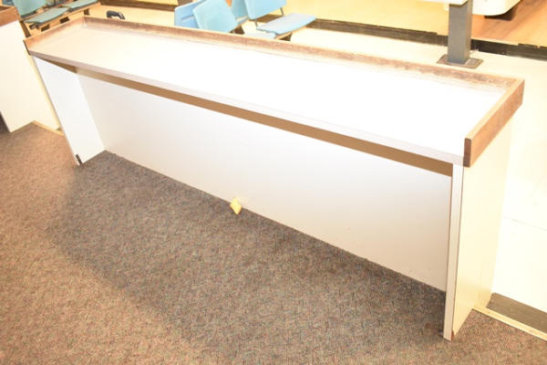 Lot of 5 wall mounted shelving/drink holders, approx. 98" long x 16" wide x 43" tall at the maximum height
