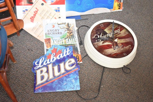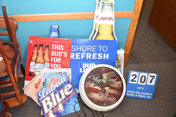 Assorted beer signs and Yuengling clock
