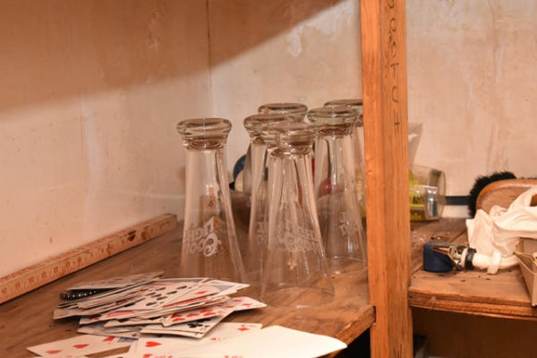 Closet contents consisting of ashtrays, glassware, etc. Does not include any parts of soda system