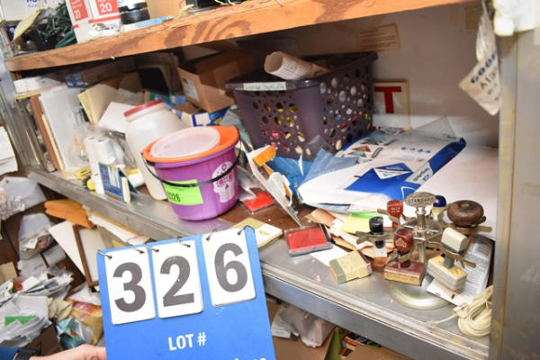 Shelf lot of office supplies