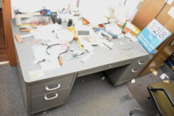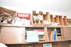 Shelf lot of office supplies
