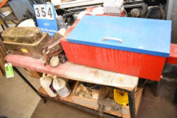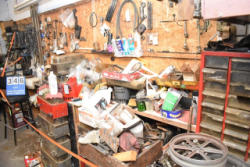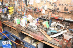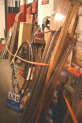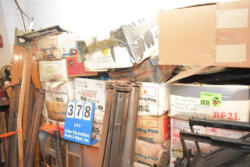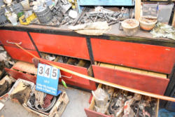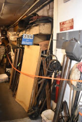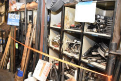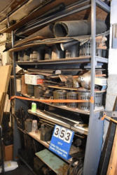 Shelving unit with contents consisting of machine parts including machine parts and ball return parts