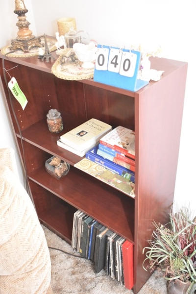 Wooden bookshelf, approx. 30" wide x 12" deep