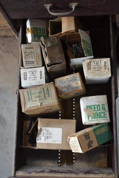 File cabinet with contents of assorted screws
