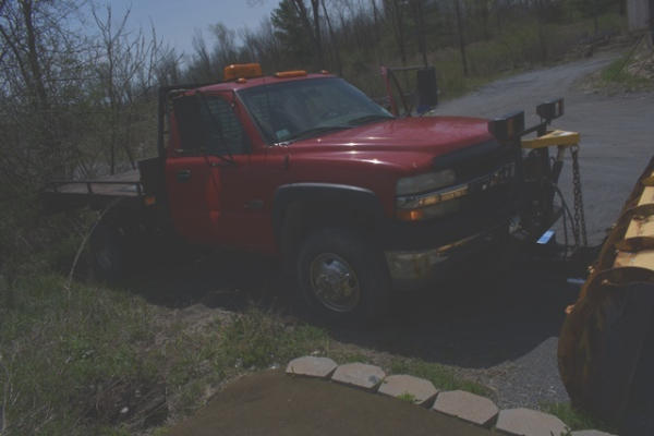 2001 Chevy 3500 Duramax Diesel, 6.6 turbo, automatic, 4 x 4, dually, 8'6" plow, flatbed, gooseneck hitch, VIN: 1GBJK341X1E306344, approx. 108,718 miles, runs, moves (TITLE AVAILABLE AT REMOVAL)