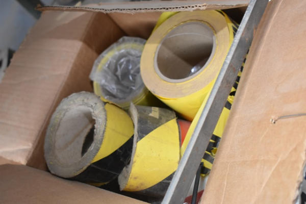 Lot consisting of yellow and black tape, red and white tape, caution tape, etc.