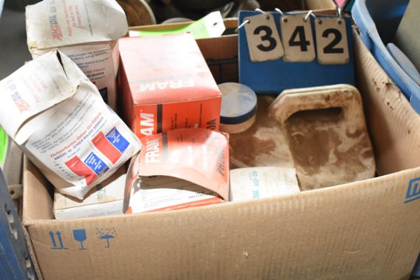 Box lot of assorted oil filters and gear lube