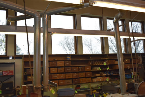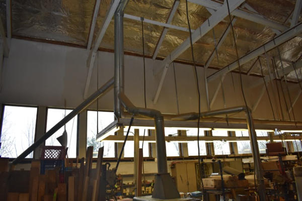 Reese 4-bag dust collection system, 10" intake, 7 1/2 HP, 3 phase, 240/480 volts, includes all duct work in building and bagger system and motor in external shed (CUSTOMER MUST REMOVE)