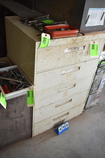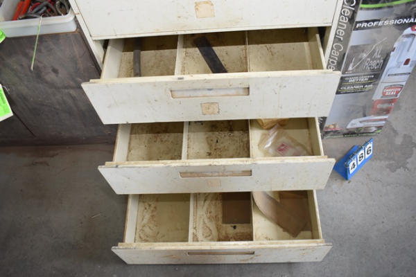 5-drawer parts bin with dividers in the drawers