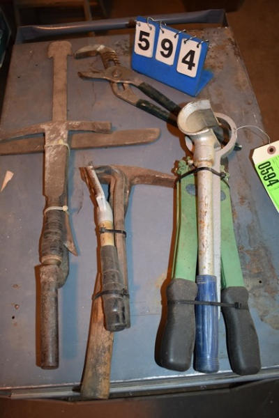 Lot of tools including slate rippers and slate hammer, scrapers, etc.