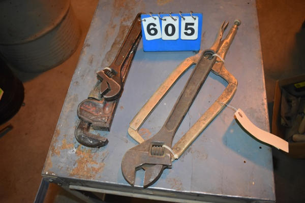 Lot consisting of adjustable wrenches, pipe wrench, vise grips