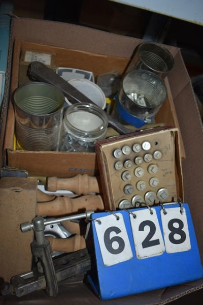 Box lot consisting of washers, screws, machinist's bolts, gas tank plugs
