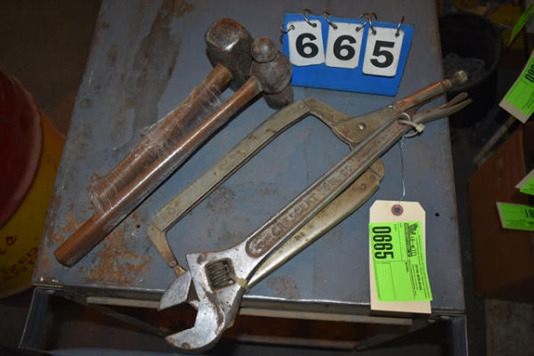 Lot consisting of hammers, adjustable wrench, vise grips