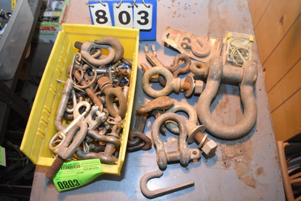 Lot of R clips, clevis hooks, small tow hook