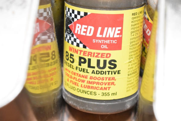 Box lot of fluids, oil, lubricating preservative, Redline Synthetic Oil, diesel fuel additive