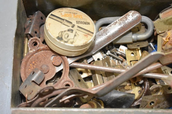Box lot including transformers, magnetic flexible strip, rivets