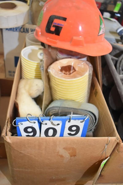 Box lot with hard hat and plastic bowls
