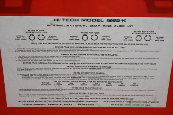 High Tech Model 1265K Internal/External Snap Ring Plier Kit