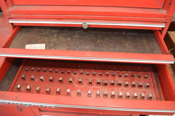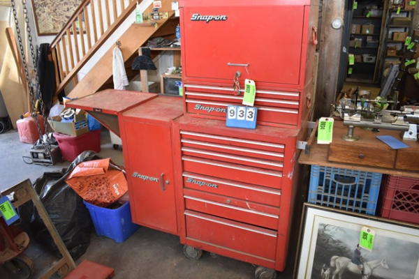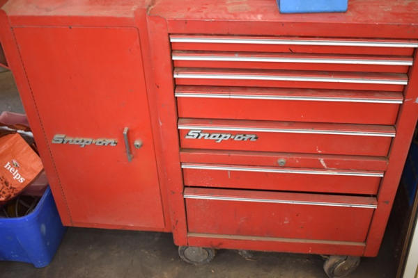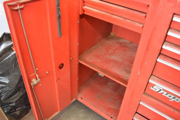 Snap-on toolbox, 4 sections with bottom, middle, top, locker, and shelf (KEYS FOR THE TOP TOOLBOX ONLY)