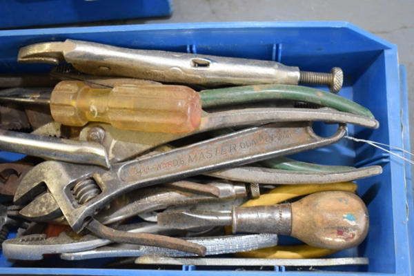 Tool lot with pliers, screwdrivers, etc.