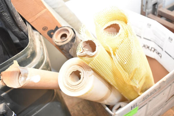 Box lot with plastic, fiberglass screen, etc.