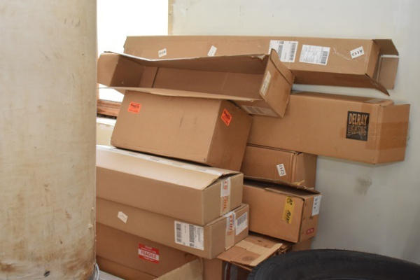 Lot of assorted chairs, cardboard 55 gallon and 30 gallon drums