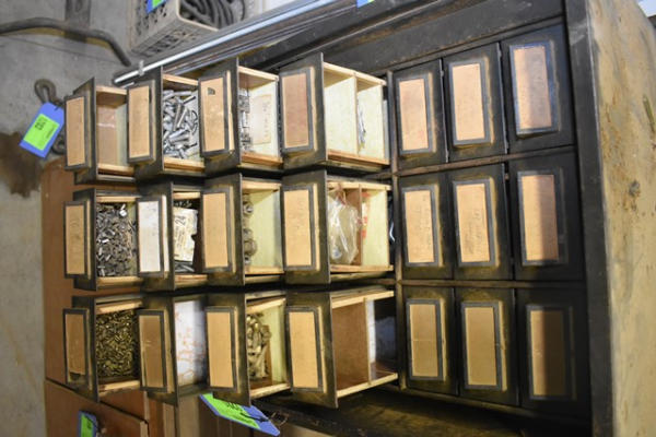 30-drawer organizing bin with machine screws, bolts, wood screws, nuts, etc.