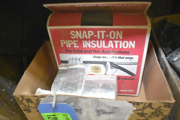Box lot including snap it on pipe insulation and tape